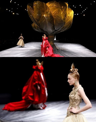本季的Alexander McQueen,出人意料的恬静,设计师要表现的应该是他巫国的王室吧。